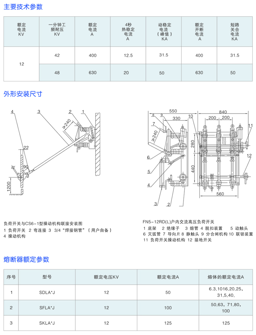 FN5-12系列戶內(nèi)高壓負(fù)荷開關(guān)及熔斷器組合