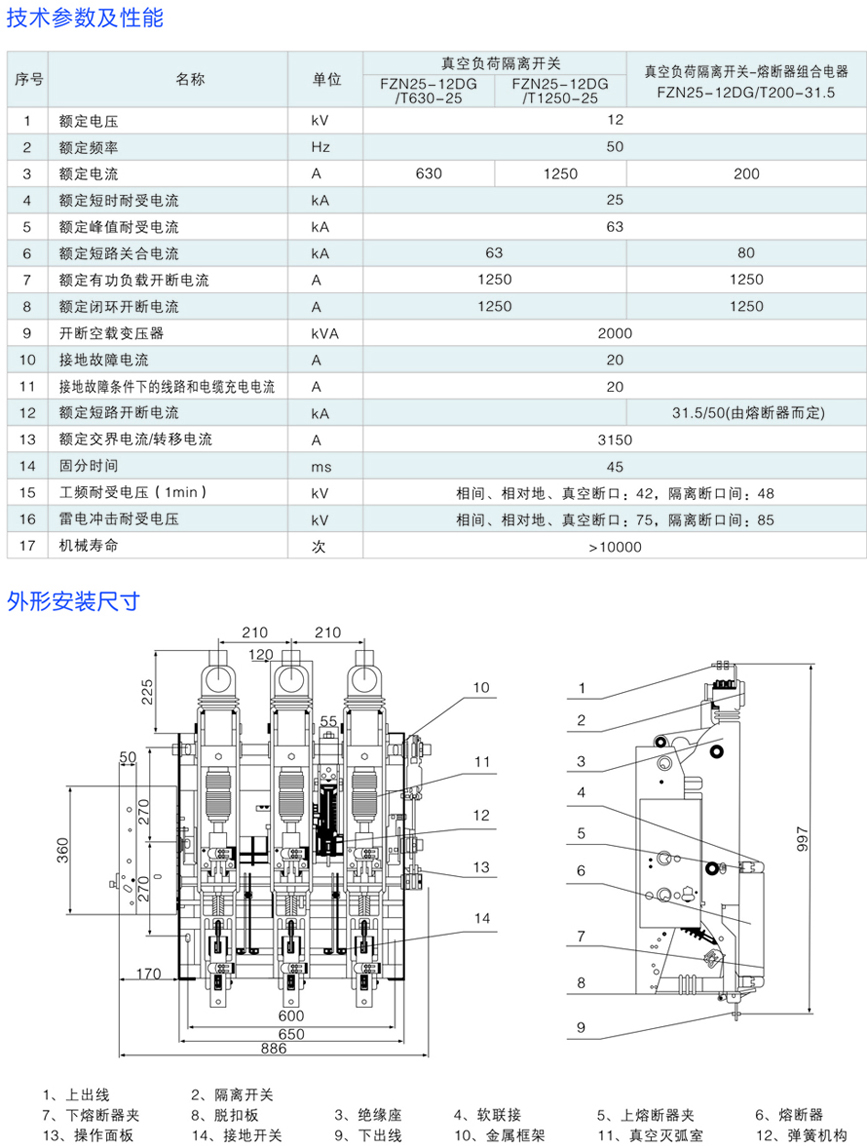 FZ(R)N25-12DG/125-31.5戶內高壓真空負荷隔離開關