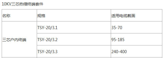 8.7/15KV熱縮電纜終端套件和直通接頭為單核心,