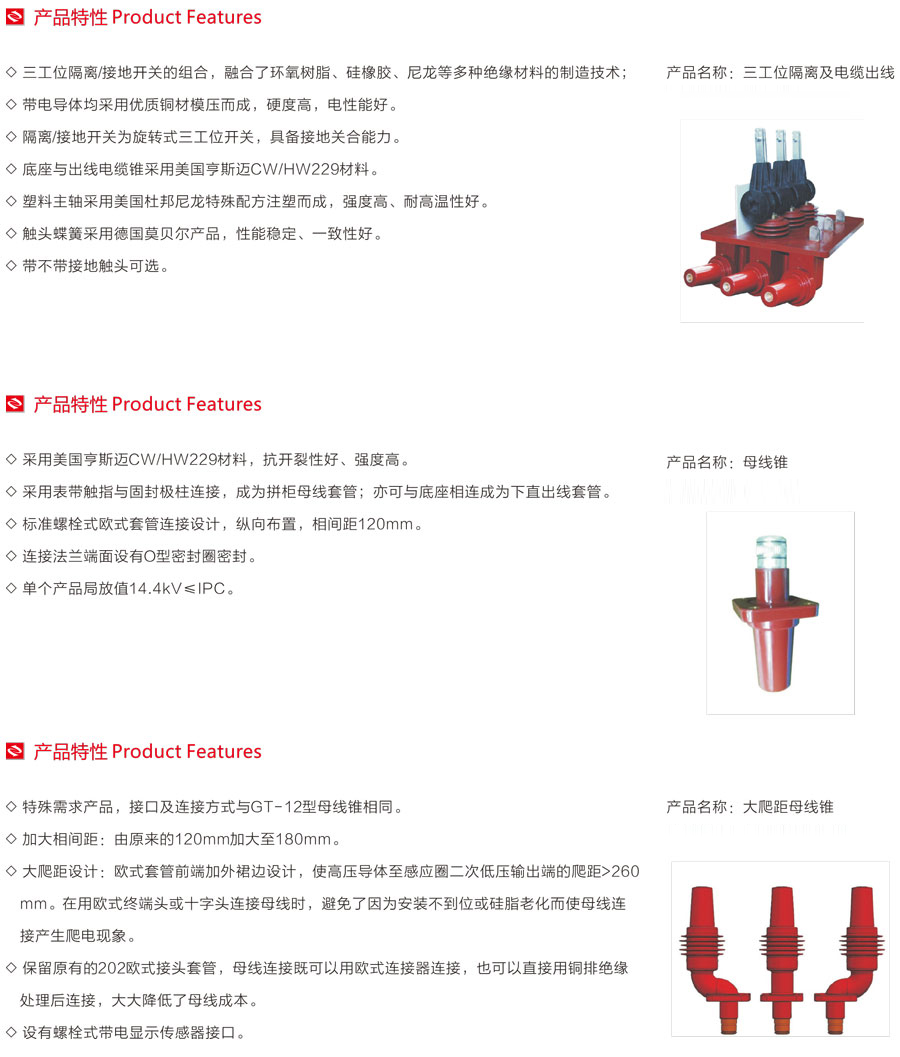 由于該產(chǎn)品具有全絕緣、全密封、全屏蔽的優(yōu)點,所以特別適用于高海拔、高溫、濕熱、嚴寒、污染嚴重等壞境惡劣的地區(qū)使用。