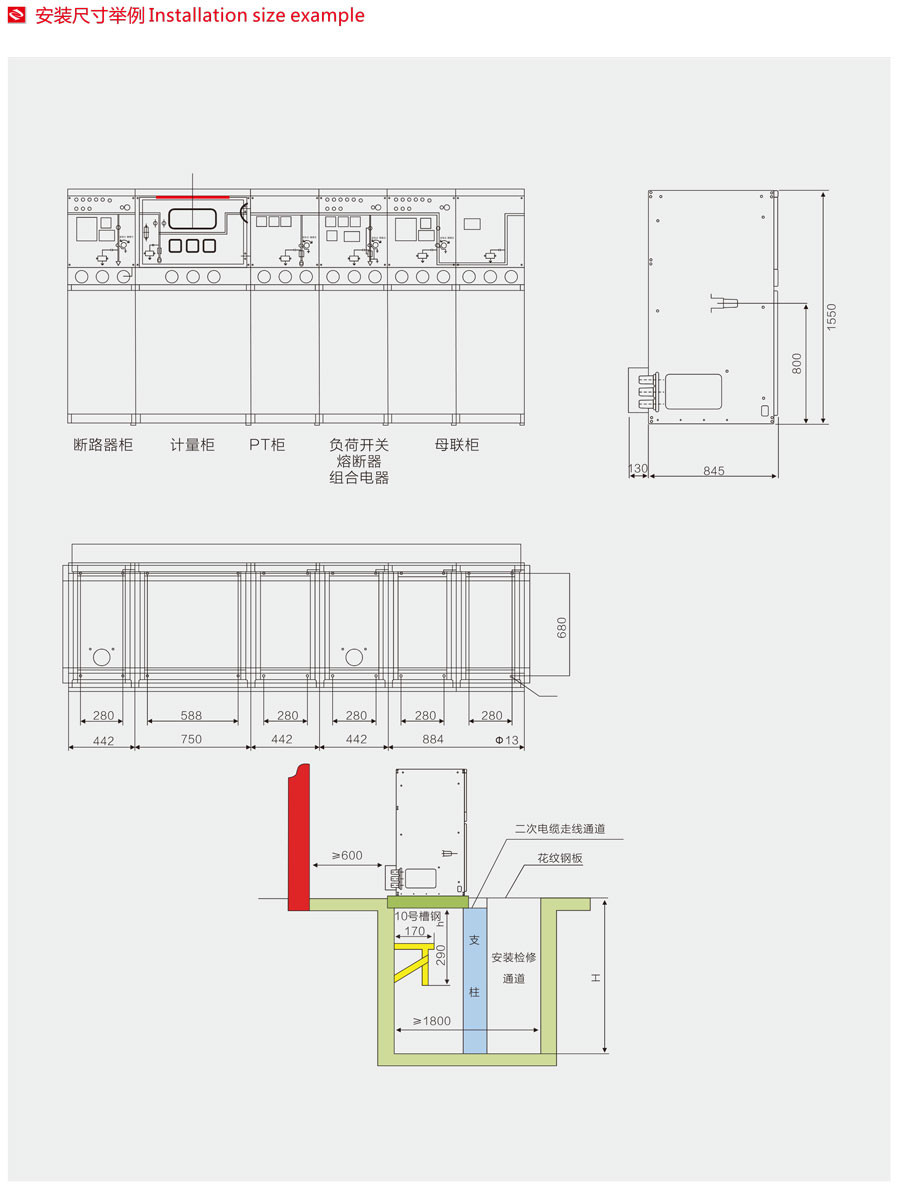 單體柜結構,全系列產(chǎn)品統(tǒng)一設計,提供用戶需要的多種柜型,而且外形幾何尺寸完全一致。采用專業(yè)電纜附件廠商生產(chǎn)的通用 絕緣母線,電纜插拔頭。開關柜可現(xiàn)場組合,隨意擴展,避免了多組組合拒帶來的運輸,安裝的不便。如果用戶要求也可提供組合柜。