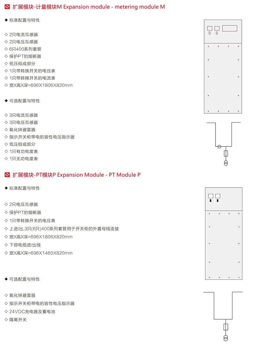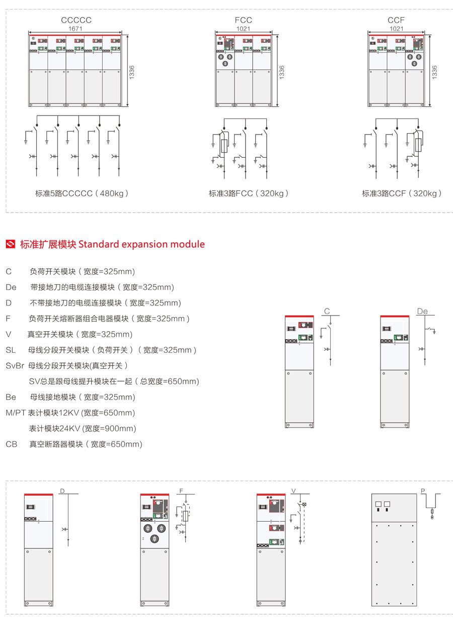 開關(guān)柜為模塊化單元模式,可根據(jù)不同用途進(jìn)行組合;由固定式單元組合與可擴(kuò)展型單元兩大類,滿足各種變電站對緊湊型開關(guān)柜靈活使用的需要。